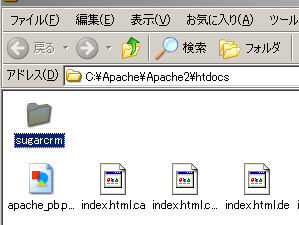 「sugarcrm」フォルダをapacheの「htdocs」フォルダにコピーします。